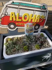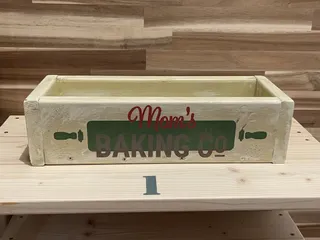 Baking Co Box/ママのパン屋さん 先日、作ったスモールボックス ご一緒だった方が皆さん顔見知りの方ばかりで、とても楽しく作業が出来ました。 ありがとうございました😊裏面です。多肉デビュー用に裏面は、息子が昔使ってたアクリル絵の具🎨でステンシルしました。 さくら餅