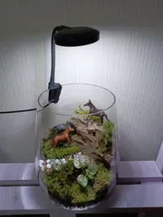 「アレンジアワード2023【苔で作るテラリウム】」 日光には当てず鑑賞魚用LED照明器具が良いと教えて頂きました💞カインズさんのレジ台に貼ってあったチラシを見て、 苔テラリウ参加しました。馬🐎を飾りました苔も沢山の種類を用意されてました。5種か6種使ってます。観葉植物のヒポエステスも一つ植わってます。🌿このチラシ見て参加しましたが私1人だけ?予約表は