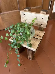 観葉植物用ミニチェア 姪のリクエストで、観葉植物を飾るミニチェアを作りました。図面も引かずにテキトーに作ったので、バランスがイマイチですね。 色はいつものブライワックスのジャコビアンです。