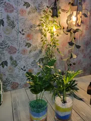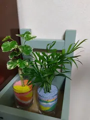 カラーサンドの寄せ植え 2個 カラーの砂を使い観葉植物植えて来ました
