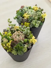 会社のイベントで多肉の寄植えを🎁すると言う事で、多肉を育てている私にちょと作ってみてとの事でこんな感じかな?作ってみました☺️貰えたら嬉しいかな…