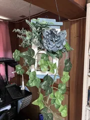 ランタン風木製ケース 2作目 2作目作ってきました。前回と違った感じにしたかったので色を持ち込み白にしました。猫がいるので観葉植物を置けず、フェイクグリーンを使いました。高い所に下げれば大丈夫かなと思いますが、一応何するかわからないので。本物使いたい‥