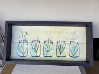 ナチュラルな感じに仕上げる事はできませんでしたが、自分が思い描いていた感じにはなったと思います(背景が大好きな淡い淡いきみどり色、フレームは紫色です)細長いお花の色がもう少し色味がはっきりしたらよかったんですけど、、、。ビン🫙の中の水の感じは若干ズレているけど、ご愛嬌で、、、
