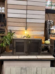 ストレージシェルフ2個目です🖤🖤前回の作品を持ち込んで同じ様な仕上がりを目指しました👍✨ 右側の作品が本日作ったものだいぶ扉の色が濃いな〜😅ですが塗りたて作りたて✌️と言うことで🎶 アイキャッチのように並べて使いたかったのです🎶 1個目を見本通りに作って帰る時に気がつき