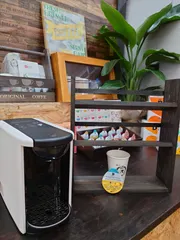 夏のコーヒー時間【ローリングストック収納棚と一緒に】 ワークショップにて塗装乾燥中、美味しいコーヒーをご馳走様でした✨家にも、こんなドリップポッドがあったら、素敵なコーヒー☕タイムになりますね。DIYしたローリングストック収納棚に、お気に入りのカップや、カラフルなカプセル、お菓子をセットして…想像してしまいます😊