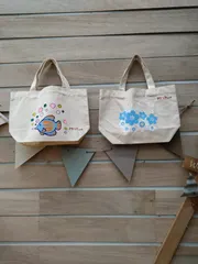 アデリアレトロなトートバッグ🛍️ ■作品内容 ■こだわりポイント本日2個目作りました。花の輪ブルーと白にしました😊