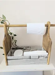 🐕️ちゃんのトイレグッズBOX ■作品内容 🐶用のトイレットペーパーとシートなどを収納できる、ロックタイトを使って簡単DIY🪛(再掲) 今回使用した材料はこちら ↓100円ショップで調達プラのボックスの両端に木製のカットボードをノーモアネイルでつけました。クランプも重しもなしで24時間硬化。。