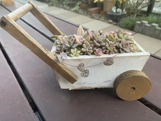 多肉カート🛒 ■作品内容ミニフラワーカートに多肉寄せ植え■工夫ポイント以前作ったミニフラワーカートに寄せ植えしました✨昨年一度寄せ植えしましたが夏にぼろぼろになったので再チャレンジです🤭ピンクメインでやわらかな感じにしてみました💕※以下多肉ハック部門のみ入力■材料■工程