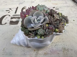 貝殻鉢に寄植え🐚 ■作品内容貝殻鉢に多肉の寄植え■工夫ポイントこちらは反対側です✨どっちを表にしても良いようにました🤗💕※以下多肉ハック部門のみ入力■材料■工程