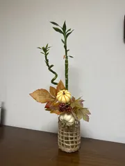 観葉植物とフェイクのわ融合オールシーズン楽しめる観葉植物ですがフェイクを挿すことで四季を感じる事ができます😆 まだ秋のハロウィン🎃のままでした😛クリスマス🎄バージョンに挿し替えます!
