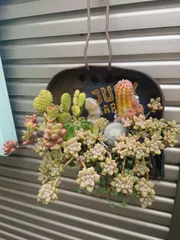 セリアのチリトリ寄せ セリアのチリトリに金網取り付けて寄植えしたのもの(作ったのはだいぶ前💦)ほんのり色づいて可愛くなってました🥰奥に入ってたミニ老楽爺さんは☆になってる😭💦 セリアのちりとりタブローhttps://diy-square.cainz.com/announcements/vxtgqez14ea4s