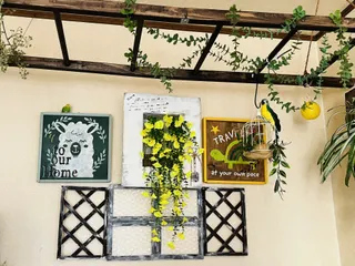 車輪とも相性の良い風見鶏のボードは一番引き立ててくれております🤲 リビングからも見えてコーヒーを飲む場としていつも目がいってます☕️❤️