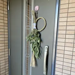 しめ縄をセッティング ■作品内容スワッグを作った後、縄に取り付けました■工夫ポイントくユーカリの葉を長く飾りたかったのでしめ縄も長めにしました