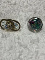 はじめてのレジン…🎶母が普段からブローチが好きなので‼︎勉強不足の作品ですが喜んでくれて…ホッとしました♪ 丸い方はドライフラワー入れてみたのですがまだまだです👉👈