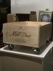 ワイン木箱にキャスターを付けてみた! ワイン木箱にキャスターをつけてみました! 随分安定感あるものができあがりました!
