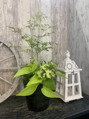 観葉植物の寄せ植え♡♡ Green Style☘️WSへ 行ってきました✩⋆*॰¨̮⋆。˚ ・ステレオスペルマムレモンタイム ・ブルースター ・ラビットフット ・ポトス ・ムーンライト【ヘデラ】 好き