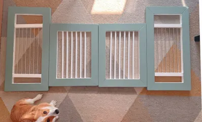 DIYはじめての作品は大きなペットサークルドア🐶愛犬くるみの新居用にカインズさんのDIYスペースレンタルして2人体制で分担して作業⚒枠組みだけで終わったし角合わせが全然できてない😭閉店間近まで作業しましたが1日じゃ終わらず残りは引越し最中の家で作業😢 2×4用の裁断ガイドがあるとも知らずに