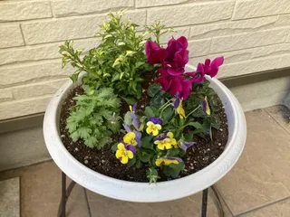 担当者お任せ寄せ植え講座 "担当者お任せ寄せ植え講座"に参加しました✨ カルーナを中心にビオラ、アリッサム、ビオラ、ヒューケラを寄せ植え、チューリップ🌷の球根を2つチューリップの咲く春が待ち遠しい😁 今朝は寄せ植えした花たち眺めながらコーヒータイム☕️