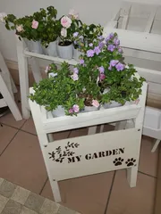 はるかのんです。 まず、ガーデンBOX 次の月、フィールドカートを作りました。 BOXとカートは 敢えて 色を変えてみました! 後日、BOXの蓋にステンシルと木の取手を付けアレンジしました カートは ワイン🍷のコルクを縦半分に切り持ち手の支柱部分