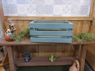 ウッドコンテナ 念願のウッドコンテナ、作ってきました!人気で予約をやっととれました。 色は、はじめてグリーンにしてみました♡