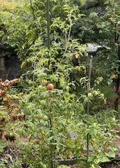 中玉トマト🍅、まだまだ元気に実をつけてます。ミニトマトはすでに枯れかかっていますが、こちらは葉も元気😀1ヶ月ぶりに帰ってきた実家の小さな菜園(アンド花壇😅?隣にはダリアが咲いてる)肥料もあげてなくて植えっぱなしなのですが、それが良かった?のでしょうか。朝晩涼しくなりましたが、まだまだ収穫楽しめて嬉