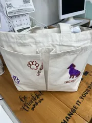 わんわん🐶トートバッグ トートバッグにステンシル…シート2枚と色は2色まで…迷いに迷って完成しました😊バッジも付けてみました❣️わんこじゃなくて私のお気に入りです😘