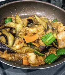 前日の鶏唐揚で「麻婆茄子」しました。 いつもなら酢鶏にするのですが、冷蔵庫にナスがあったので、麻婆茄子にしてみました。味付けは丸美屋の麻婆豆腐の素です。鶏唐揚に味がついてるので麻婆豆腐の素、もう少し減らしても良かったかな?ご飯しっかりお代わりしてしまいました。筍煮物は味染みで無茶美味しい。😋