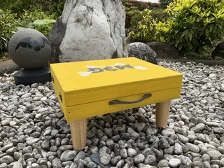 久しぶりに作品投稿します💦ツールBox Box作りました♪一文字のビス留めの締め加減で、スライドさせるという技!!あんばいの難しさを実感しました。いろいろ体験させて頂き楽しい!見本とは異なり私はちょっと男らしい色味にしましたが、かすれた白などを塗って遊んでみようかとも思っています。