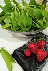 今日も完熟🍓と葉物野菜収穫\(^o^)/ 今日も🍓GET\(^o^)/リーフは多めにカットして、レタスミックスの為にスペースが出来るように💪🍓「よつぼし」の親株がすごーい頑張ってます。プランターの奥端に植えてるのにツルで反対端まで到達。完熟待ちです。