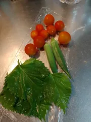 わくわく家庭菜園作り賞【ミニトマト、オクラ、紫蘇】 今日の収穫です😄少しですが嬉しいです🥰