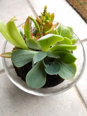 苔玉再利用 観葉植物で作ってあった苔玉、寒波で枯れてしまい中身のないまま放置していましたが、しっかり植え穴があるので土を入れながら多肉を挿してみました。リメイク完了💕