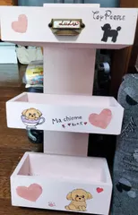12月2日に作成3段ラックやっとアレンジできました💕 ルル🐶ちゃん用にアレンジする予定でやっと出来ました…ルルちゃんのお部屋もお掃除模様替えしなくちゃです❗1段目はトイプードルシルエットとネームプレート💕2段目ティーカップ☕入りプードル🐶フランス🇫🇷ロゴで私の犬♀3段目ルルちゃんアップ…パパちゃんに見せたらルルよりかわいいって…コラ🫤PINKのハート🩷