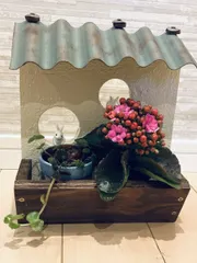 お家型多肉プランター お家型多肉プランター作って来ました。カランコエのお花を入れたら可愛くなりました。多肉で感じが変わから楽しいですね、