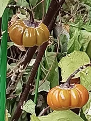 ソラナムパンプキン(花なす) 今朝の花なすの様子です💞赤みが増してきました。昨年のGWSハロウィンの寄せ植えに使用した花なす。いっぱいなってます。