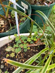 バラの挿し木 あまり成功しないバラの挿し木🌹多分ピエールドゥロンサールかなと🧐地植えのピエール大きな木の根元に穴が空いてしまって😩小さな一鉢はあるんですが万が一のために慌てて寄せ植えの中に挿したら根付きました😁ラッキーでした✨