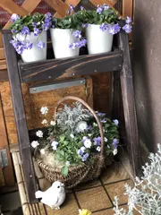 看板なし鉢置きプランター♪ ステンシルが終わってないので、看板なしで鉢を置いてみました♪上下で鉢を置くのもいい感じですね。