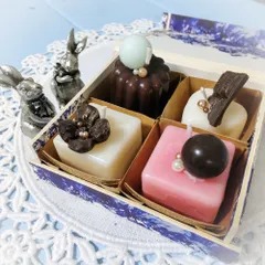 Happy Valentine💝チョコレートキャンドル🕯️ BOXまでつけてくれて、なんてお得🥰帯までついてます💕し、しかし‼️家に帰りついたら、BOXの中身はひっくり返り、トッピングはバラバラに😱ワックスをライターであぶって付け直し😖💦とりあえず、復活💦せっかくなので、本物のチョコの箱に詰め直して…💙昨年のMAISON CACAOの空き箱🍫にピッタリフィッ