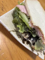 ひじきサラダサンド トーストしたパンにひじきサラダをサンド。しまった🤣食べる前に写真撮り忘れて💦⬇️こんな風に乗せてレタスとハムを追加して食べました😉