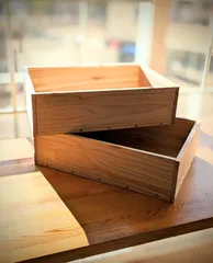 A4サイズが楽に取り出せるBOX おはようございます。朝活☀です。昨日切り出してビスたてしてた物を洗濯待ちの間に組み立てました。😅小型のワイン箱みたいな感じです。😊無塗装もきれいだなあ…色は考え中です。