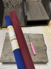 レトロなブックスタンドをカスタマイズしてみた ■材料百均の貼れる布 ベルベット調カッター、定規■作り方貼れる布を内径の大きさに切って貼るだけです■工夫ポイント布シールは、内径よりほんの少しだけ小さく(1ミリくらい)切ると、きれいに貼れます大きめに貼って、後で底に沿ってカッターで切ることもできますが、その時は板を傷つけないように、優しめに布シール