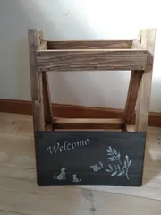 落ち着いた雰囲気の看板付き鉢置きスタンド素敵です🤩グリーン🌱を選ばす飾れますね✨ リメイクの作品投稿も楽しみにしています🥰
