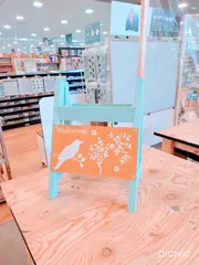 看板付き鉢置きスタンド 昨日、WSしてきました✨✨ 塗料の色、2色使うので悩んでしまったけど〜やっぱり明るい塗料を選んでしまう✳️ お気に入りになりました😉👍 初めてのステンシルやって楽しかった💕