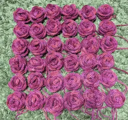 大きめの🌹36個 ブーケット用の🌹今回は🌹大きめなので36個ようやく🌹が編み終わりました😁これからブランケットに縫い付けしていきます✨