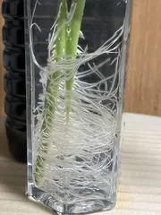 すごい沢山の根っ子! うちのミニトマト枝が増えて風通しがよくなるようにと切り取ってそのまま土に挿しました。 お花も三輪、すくすく育ってます💞