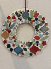 タイルでリース作り お茶カフェもちりんでmp.gardenさんのワークショップに参加しました 皆さん楽しそうにタイルを選んで作品を作ってました
