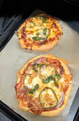 焼き上がりました、と言っても数日前に作ったものです🍕見た目美しくなくてすみません😓生地とピザソースを作り、自家製野菜のミニトマト、玉ねぎ、パセリ、市販品はサラミ、ベーコン、チーズ、ピーマンを使っています。好きなものを好きなだけトッピングできるので、チーズ多めとか🧀ワガママに作れてしまいます🤗