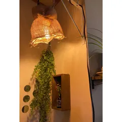工事現場用の投光器を💡 カインズで、投光器を買ってきました🙌🏻強力なクリップがついています👍🏻✨kumimokuの棚受けを使ってクリップライトを固定😆明るすぎたので麻布でカバーを🌿LED電球なので熱くなりません👍🏻✨コードは5メートルなので、外で作業する時は取り外して使おうと思います🤩
