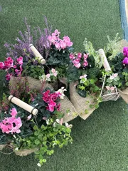 ガーデンシクラメンの寄せ植え ガーデンシクラメンの寄せ植えを作って来ました🪴同じ花でも色が違うだけで、みんな素敵に出来上がりました💕参加した皆さんと❣️自分の作品🪴これから楽しめそうです😊