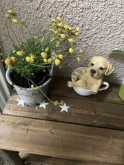 花蛍 カインズワークショップで作った棚の上にダイソーの犬と、カインズで購入した花蛍を並べました。