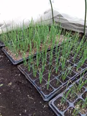 玉ねぎ🧅の苗作り、その後‼️ ■育てた野菜玉ねぎ🧅の種蒔きから苗作り今年は250本■エピソード昨年は苗を購入したのですが、細くて、植付け後、数日で苗が溶けてしまって残念な思いをしましたので、今年はタネから苗作りに挑戦しました。💪💪💪大分太くなってきました。👍👍👍良い感じに育ってきました。✨✨✨上手く育つと良いのですが👏👏👏トレイ